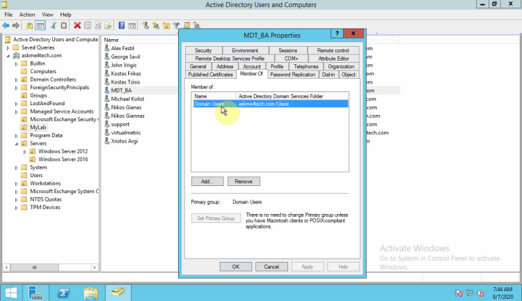 • Add the user which create in the beginning. MDT_BA in this scenario.