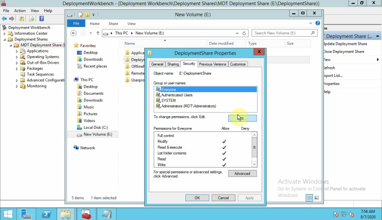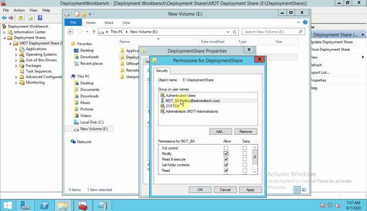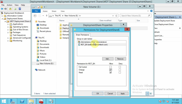 • Remove the user Everyone and add the user which create in the beginning. MDT_BA in this scenario.