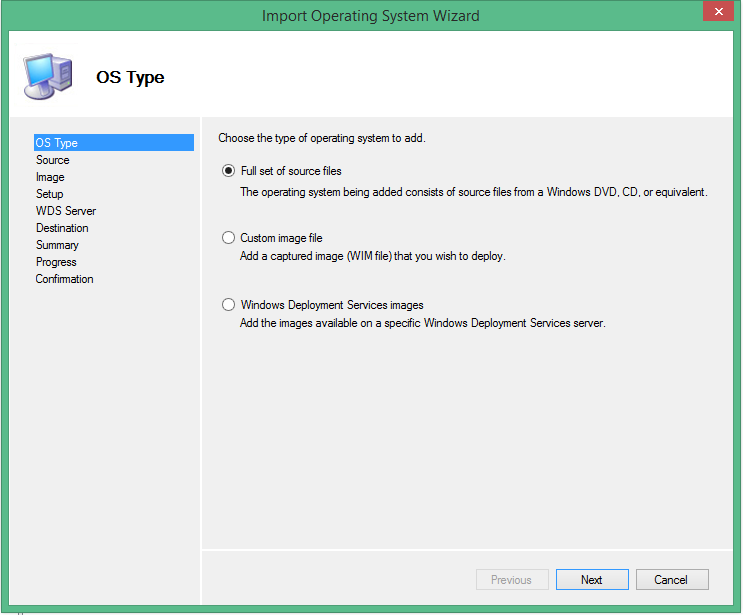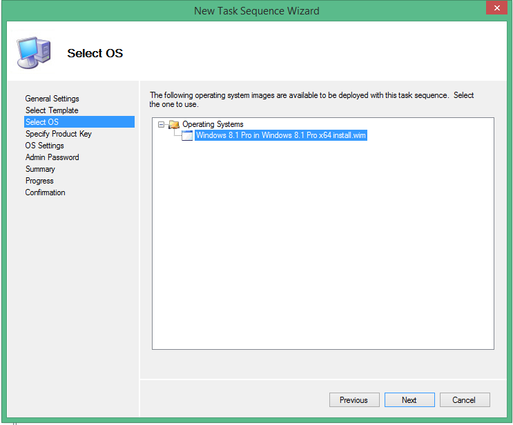 • Right Click in Operating Systems and select Import Operaring System.