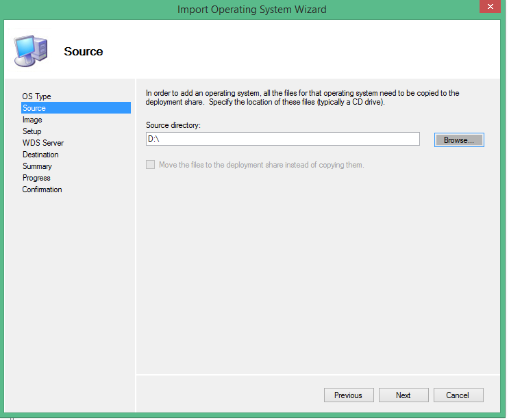 • Browse and find the Directory which included the Source files of Windows and click Next.