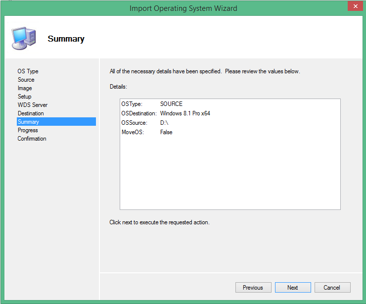 • Verify in the Summary that all the options are ok and click Next.