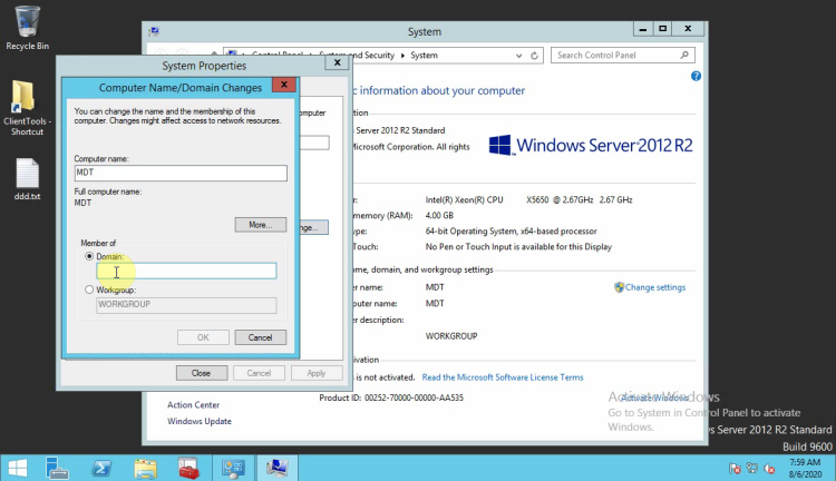One of the first steps before proceed with all the other steps is to join the Server that will use as MDT in the Domain.