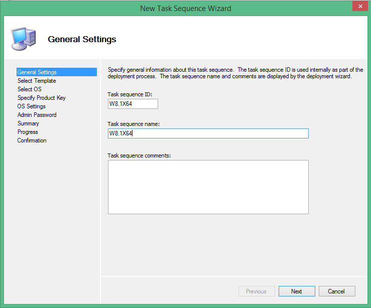 • Fill the Task SequenceID and TaskSequenceName (names that you can identify in the future) , clck Next.
