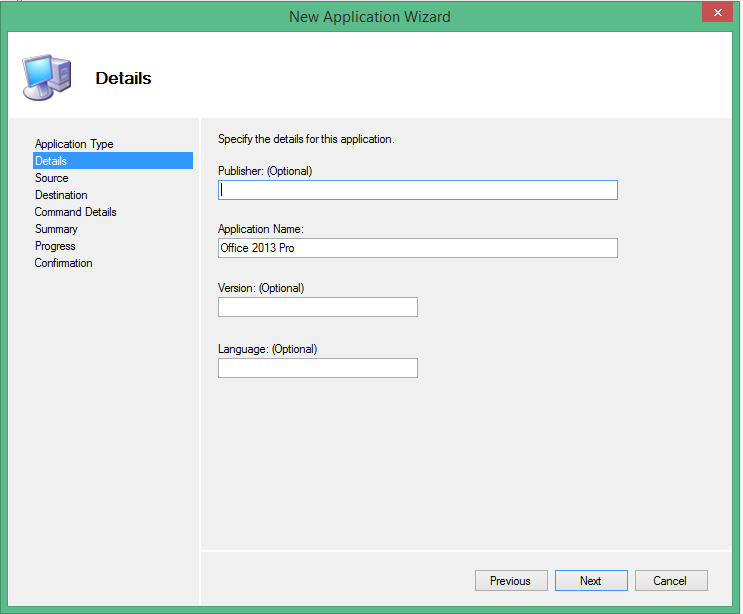 • Write in Application Name Office 2013 ProPlus and click Next.