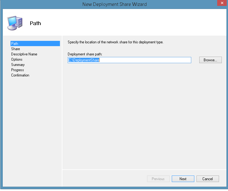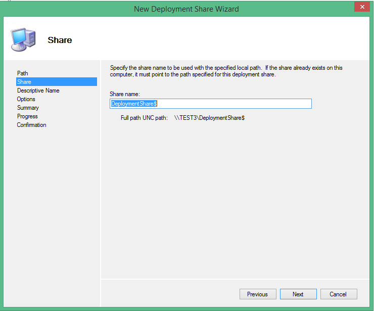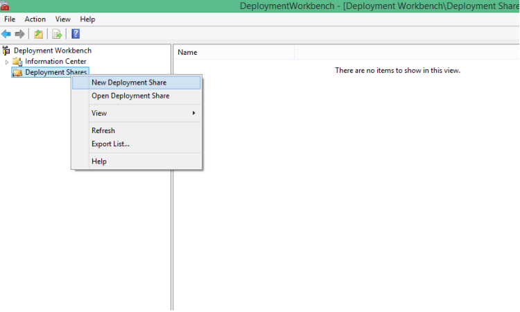 • Right Click in Deployment Share and select New Deployment Share.
