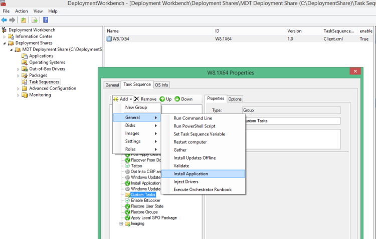 How to add a Custom task in Task Sequence