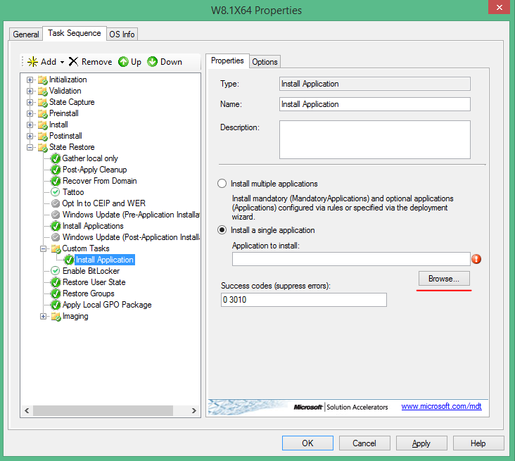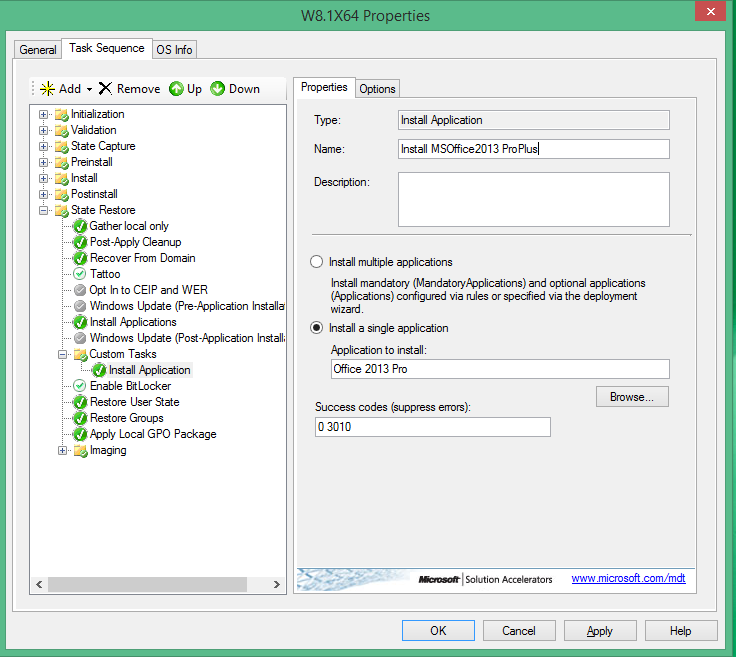 • Change the name in the top instead of Install Application rename like Install - MS Office 2013 (The names in MDT2013 is very important for a clear reference in the future)