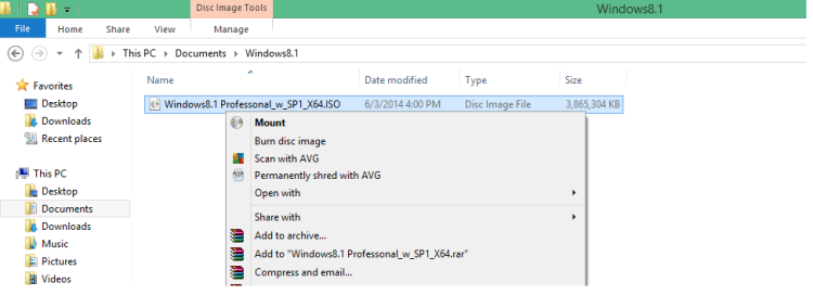MDT 2013 support adding full source of Windows DVD ISO and custom images that you have created. In this case will create a Reference Image from a source setup files of Windows. If you have an iso file of Windows open the folder which have the iso and right click select Mount. Then you will see a new DVD Drive in My Coputer with the files of Windows iso to import in MDT 2013.