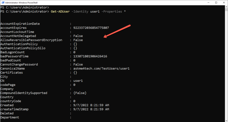 Get-ADUser -Identity user1 -Properties * | select name,pass*