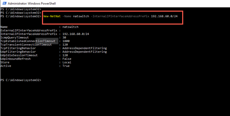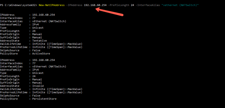 New-NetIPAddress -IPAdress 192.168.60.254 -PrefixLength 24 -InterfaceAlias "vEthernet(NAT")