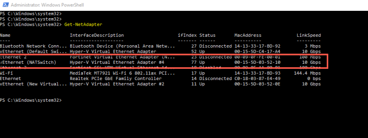 We will create a NAT Switch that will provide Internet access to multiple VMs from the Host Network Adapter.