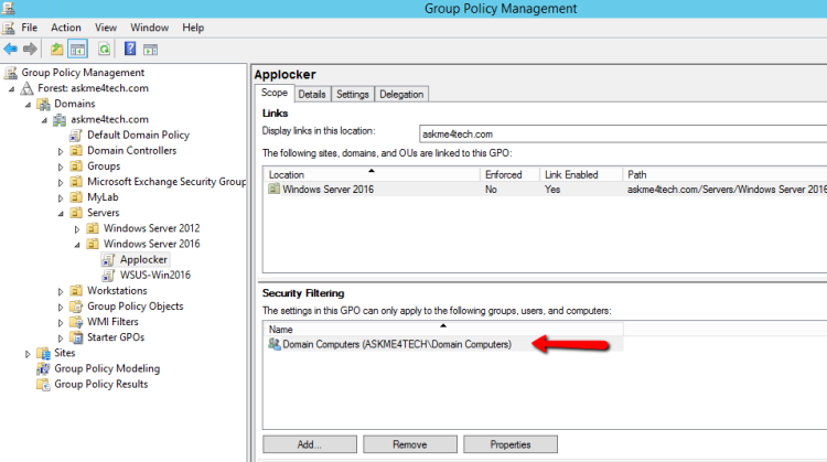 • Remember to included in the specific Organization Unit which has Link the AppLocker  GPO.