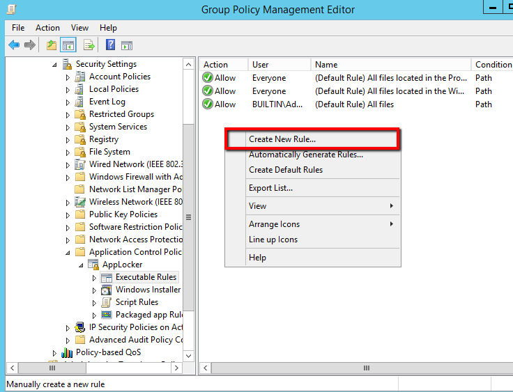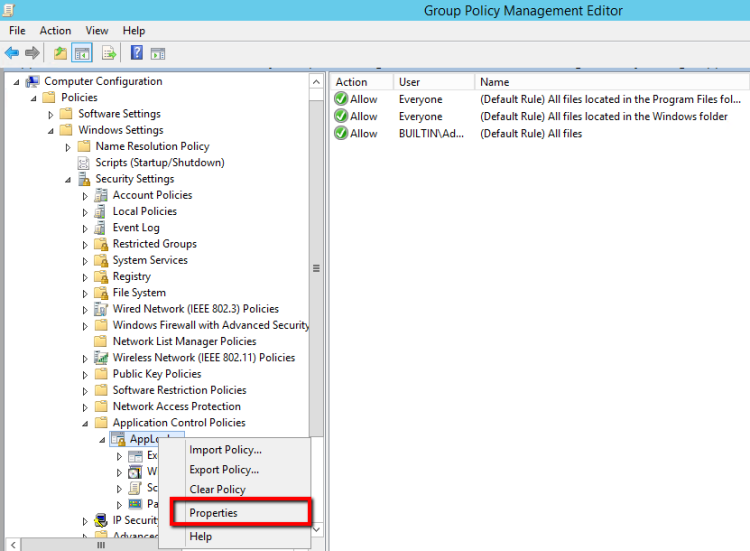 • Go in Computer Configuration\Windows Settings\Security Settings\Application Control Policies\Applocker