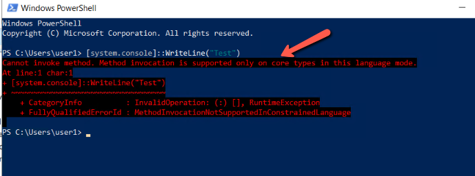 However, when the AppLocker Script Rule have been created the commands or script in PowerShell is still running but only in ConstrainedLanguage mode.