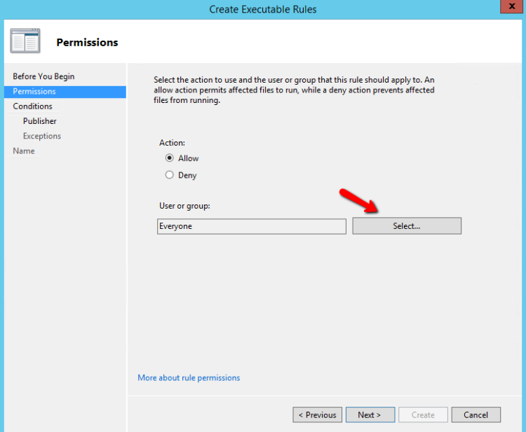 • Identify if you want to Allow or Deny and select the Appropriate Group